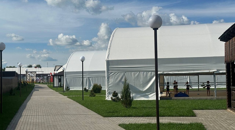 Для тренировок команд непосредственно на территории расположен манеж для различных видов спорта. Покрытие манежа - это специализированный паркет из мягкой бразильской гевеи, которая снижает риск травмы. Также здесь есть две раздевалки с душевыми на 60 спортсменов, кабинет для тренеров и врачей и трибуны на 58 человек.
