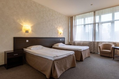 Номер меблирован двумя большими односпальными кроватями, которые при необходимости легко превращаются в комфортную двуспальную кровать.Ванная комната оснащена душевой кабинкой и всеми необходимыми принадлежностями (фен, косметические средства, халаты, тапочки). Все номера оснащены кондиционерами и имеют выход на балкон.