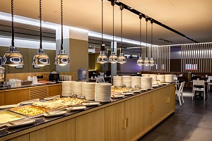 Ресторан отеля встречает гостей разнообразными завтраками, включающими свежевыжатые соки и горячие напитки, ассорти из свежих фруктов и овощей, каши и нарезки для бутербродов. Вечернее меню предлагает как комплексные обеды, так и изысканные блюда по меню. Для масштабных мероприятий предусмотрен просторный банкетный зал.