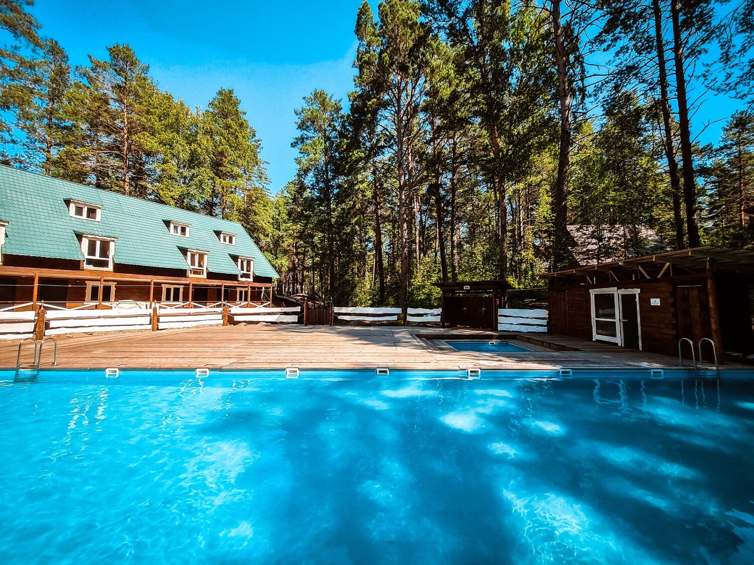 Гостям предлагаются различные виды для размещения: деревянные домики различного комфорта, стандартные номера в кедровом доме, отдельно стоящие бунгало. Комплексное 3-разовое питание организовано в столовой на территории базы отдыха.