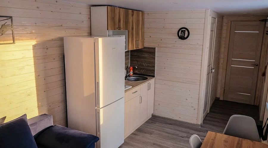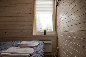 В доме: двуспальная тахта - 2 шт., односпальная кровать - 6 шт., жалюзи, отопление, вешалка для вещей, бесплатный wi-fi, TV, холодильник с морозильным отсеком, чайник, микроволновка, газовая поверхность, комплект посуды и столовых приборов на четыре гостя, обеденной стол и шесть стульев (дополнительные предоставляются по запросу), вешалки для верхней одежды.Мини-дома на 3 чел.