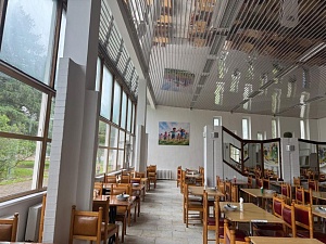 Ежедневно дети совершают пешие прогулки, летом катаются на велосипедах, зимой - на лыжах. На территории базы: закрытый бассейн, спортивные площадки, футбольное поле, теннисный корт, конференц-зал на 260 мест.