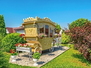Для гостей: подогреваемый открытый бассейн, русская баня на дровах, джакузи с гидромассажем, комната отдыха с бильярдом, караоке. Также на территории есть собственный ресторан, где шеф‑повар готовит блюда по оригинальным рецептам русской кухни.
