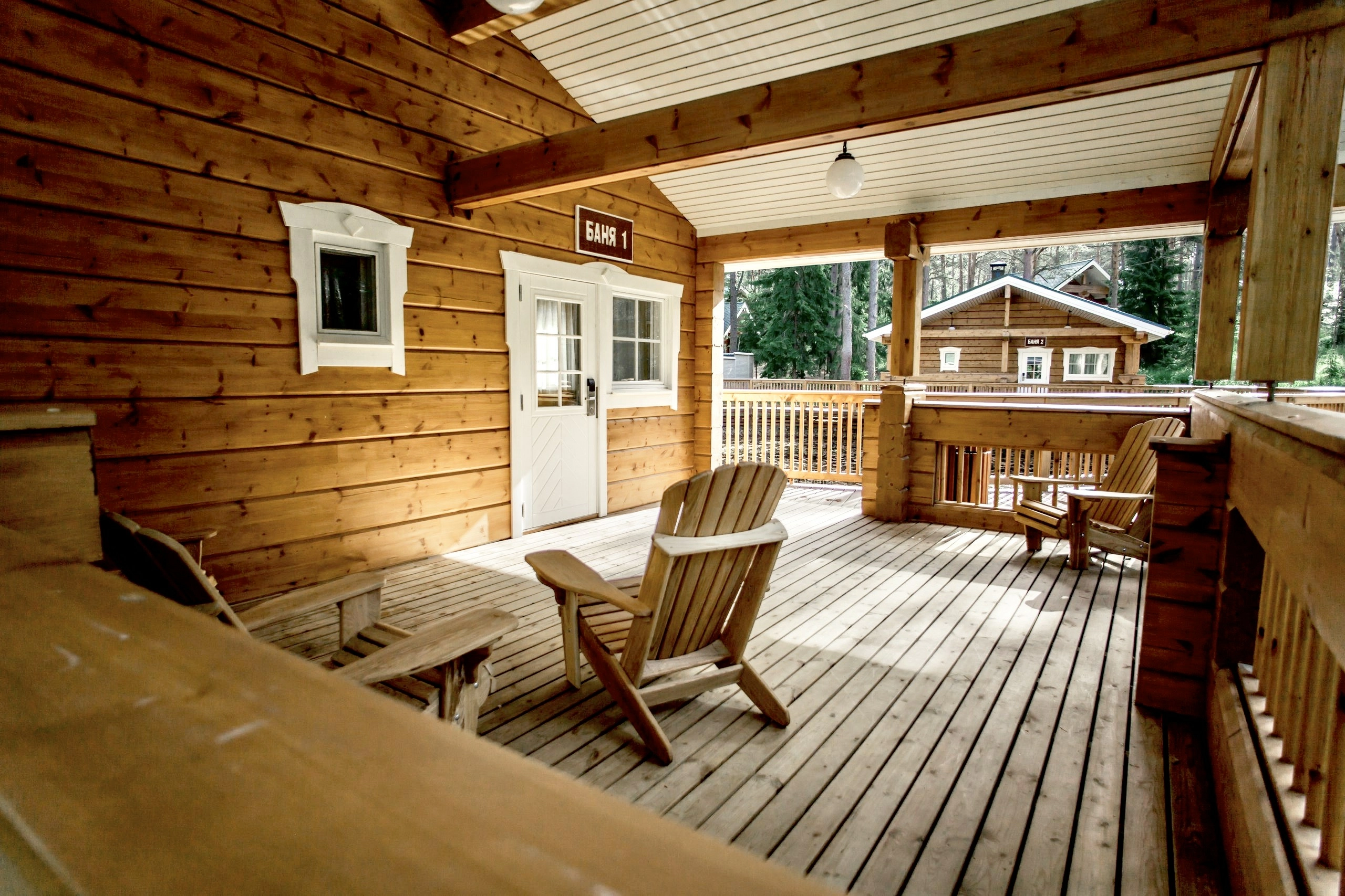 Коттеджи площадью от 58 до 70 м2 оборудованы полноценной кухней со всей необходимой утварью, гостиной с телевизором и мягкой мебелью, спальнями и санузлами, а также просторной террасой.