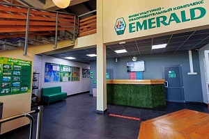 Корпуса для спортсменов расположены в непосредственной близости от спортивных объектов: часть — рядом с футбольными полями, другие — рядом со спортивными залами. Все корпуса одно- или двухэтажные, оснащены централизованным отоплением. Уборка проводится ежедневно, смена полотенец и постельного белья осуществляется один раз в три дня. В общих холлах установлены кулеры с питьевой водой. В зависимости от корпуса, санузлы могут быть либо общими на этаж, либо индивидуальными — в каждом номере. Комнаты оборудованы полутороспальными кроватями, шкафами для личных вещей, телевизорами и кондиционерами. Тренеры размещаются в одноместных номерах. Размещение на территории парк-отеля «Изумрудное» обсуждается отдельно.Стоимость для спортивных групп