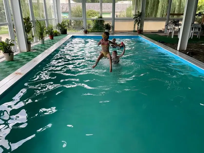Размещение разнообразное, в зависимости от корпуса: в двух-/ трехместных номерах с удобствами на блок и личными террасами, в главном здании в 2-4х местных номерах, в коттеджах 6-7миместное размещение с террасами, в Тереме в стилизованных номерах. Питание предоставляется трехразовое, по системе «Шведский стол», вкусное по домашнему.Стоимость для спортивных групп