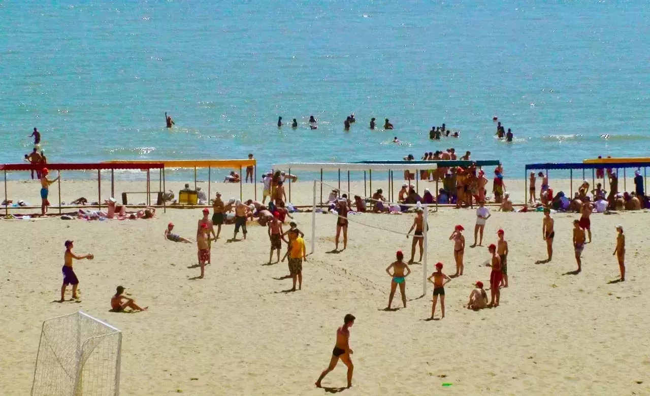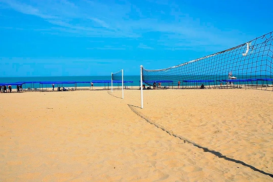 - Ограждённая оборудованная территория на пляже с волейбольными площадками