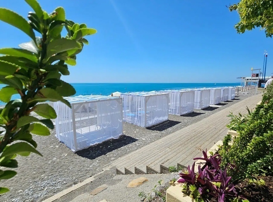 Парковая зона комплекса - отличное место для пеших прогулок: здесь проложены просторные аллеи, царит свежий морской воздух и обустроено множество уютных мест для отдыха. В 500 метрах от комплекса расположен просторный галечный пляж, полностью оборудованный для комфортного пляжного отдыха.