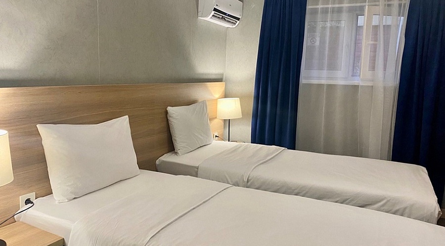 Гости комплекса размещаются в трёхэтажном главном корпусе, уютных четырёхэтажных коттеджах (всего 16) или в пляжном корпусе. Каждый номер оснащён всем необходимым для комфортного отдыха: удобной мебелью, феном, мини‑холодильником, чайником и ЖК‑телевизором с цифровым телевидением. В ванной комнате - современная душевая кабина.Цена от