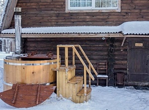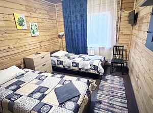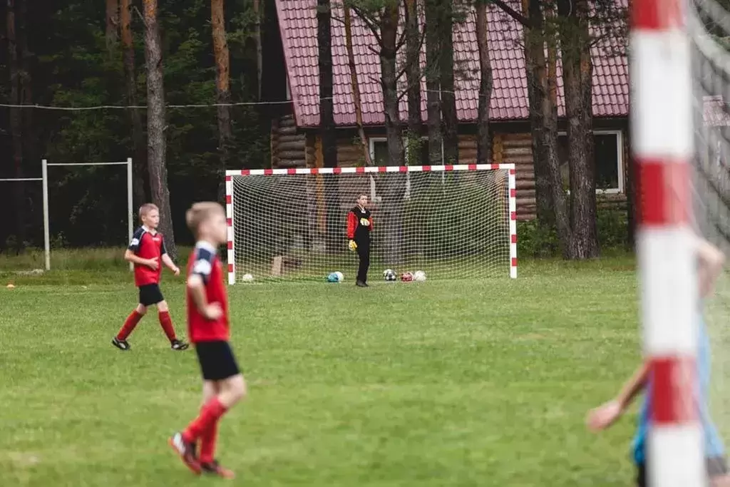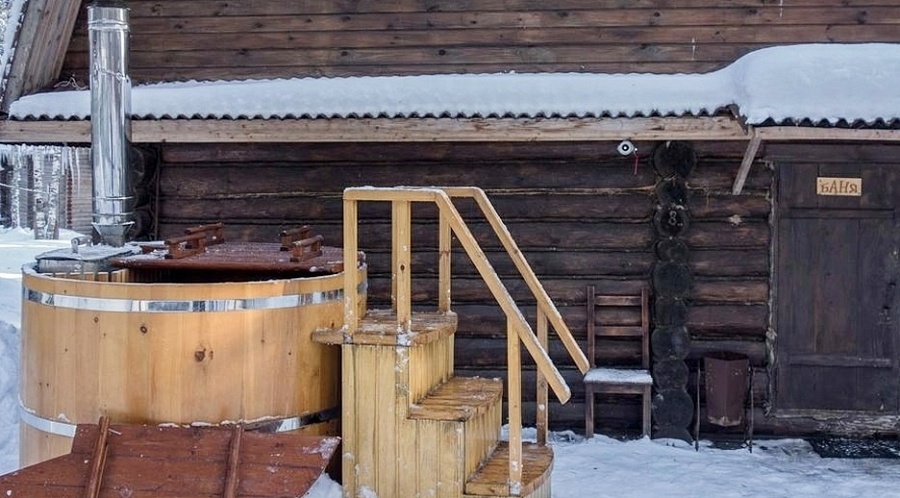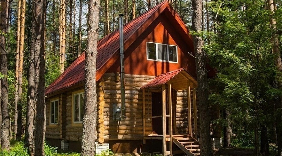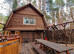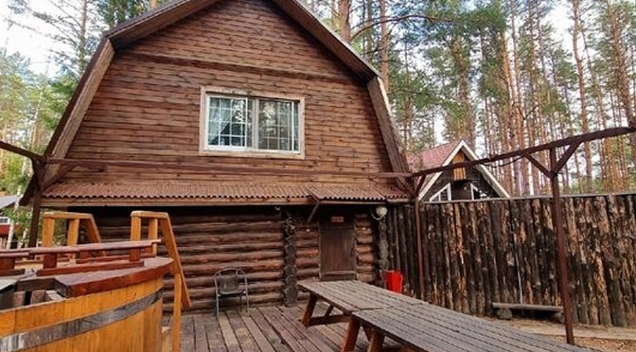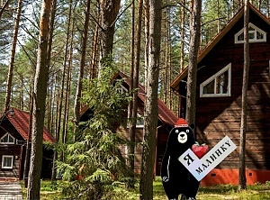 Территория базы — сосновый бор, облагороженный дорожками и резными деревянными и глиняными фигурами — персонажами русских сказок. Для проживания предусмотрены уютные деревянные коттеджи.