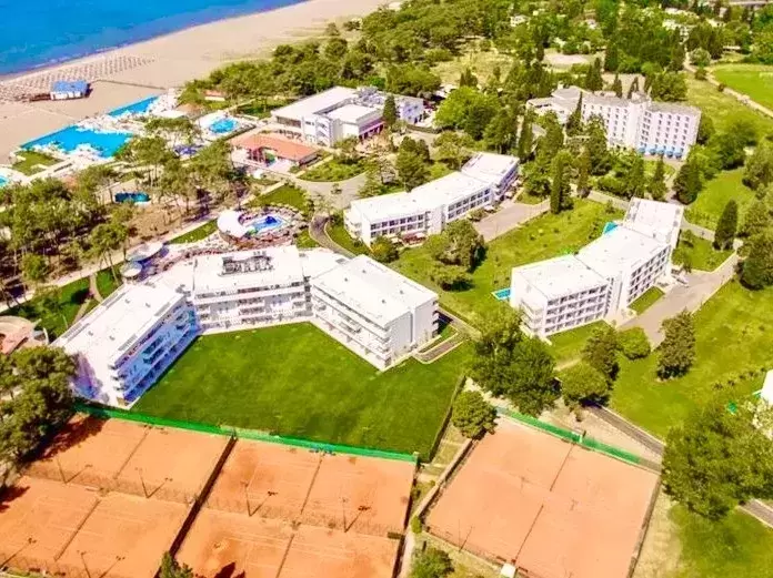 На территории отеля расположено 7 профессиональных теннисных кортов с грунтовым покрытием, освещением и ограждением по периметру, а также мини-футбольное поле с искусственными покрытием. Для занятий йогой или пилатесом здесь имеется специальная площадка, а для общей физической подготовки — открытый тренажёрный зал.