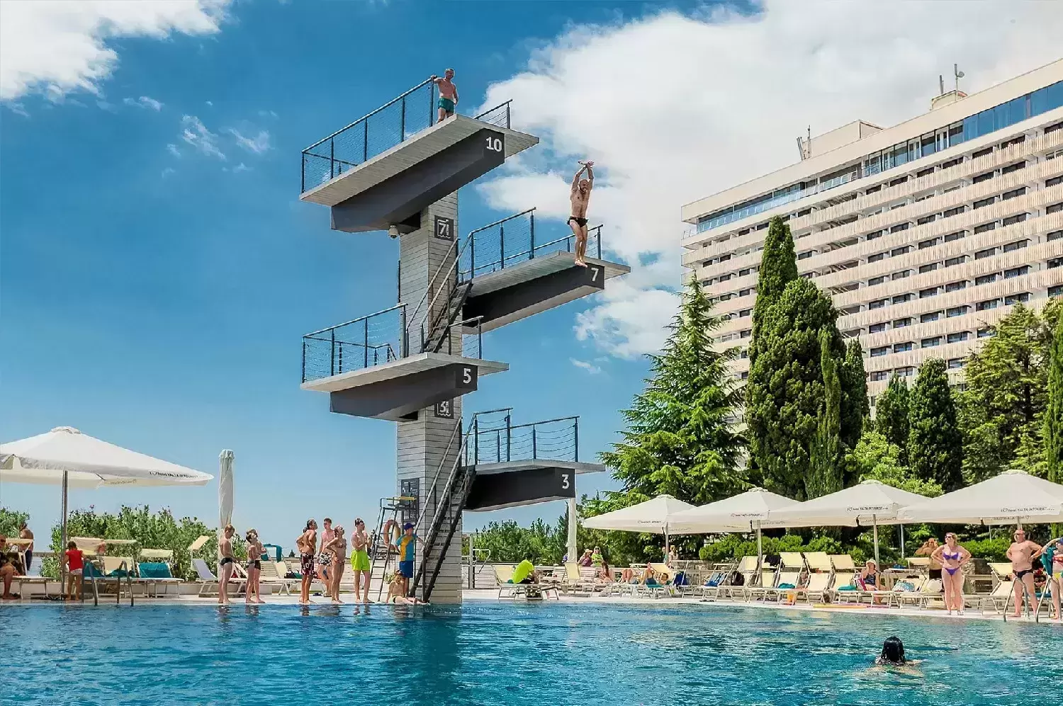 Жемчужина «Интуриста» — собственные двухуровневые песчаные и галечные пляжи, оснащенные уборными, раздевалками, душевыми кабинками и беспроводным интернетом. Кроме того, на территории имеется 5 бассейнов, в том числе уникальный 50-метровый бассейн с морской водой, 10-метровая прыжковая вышка, аквапарк, уникальные «Воронцовские» бани со стеклянными потолками.