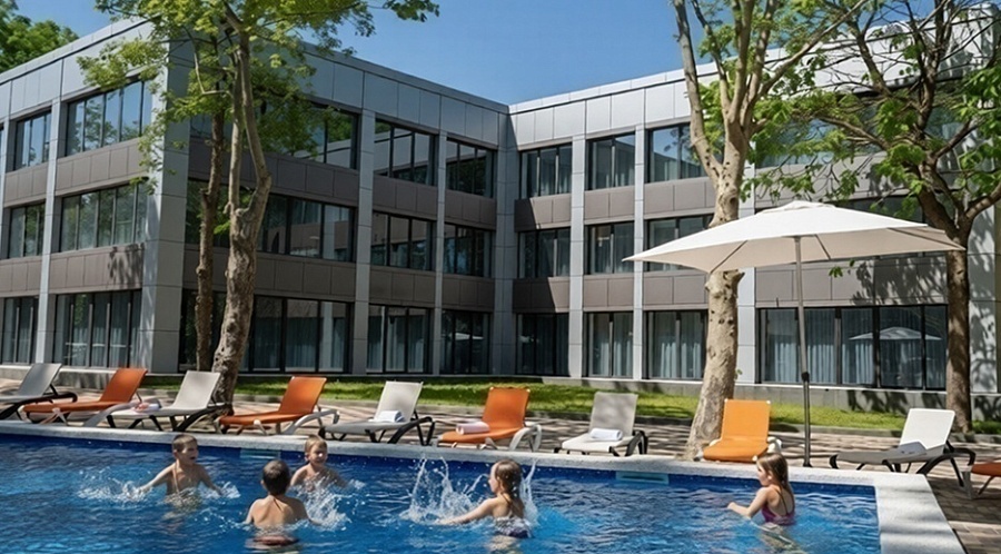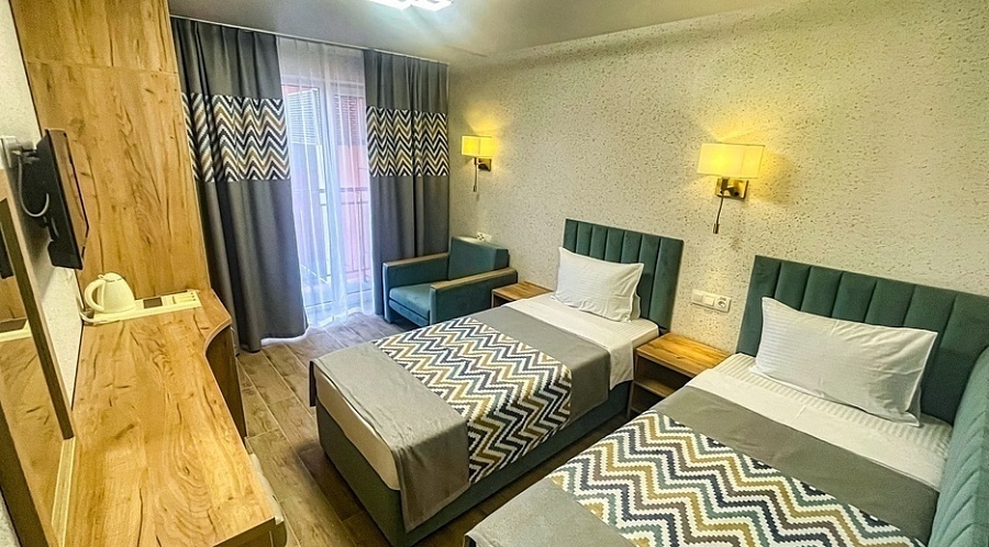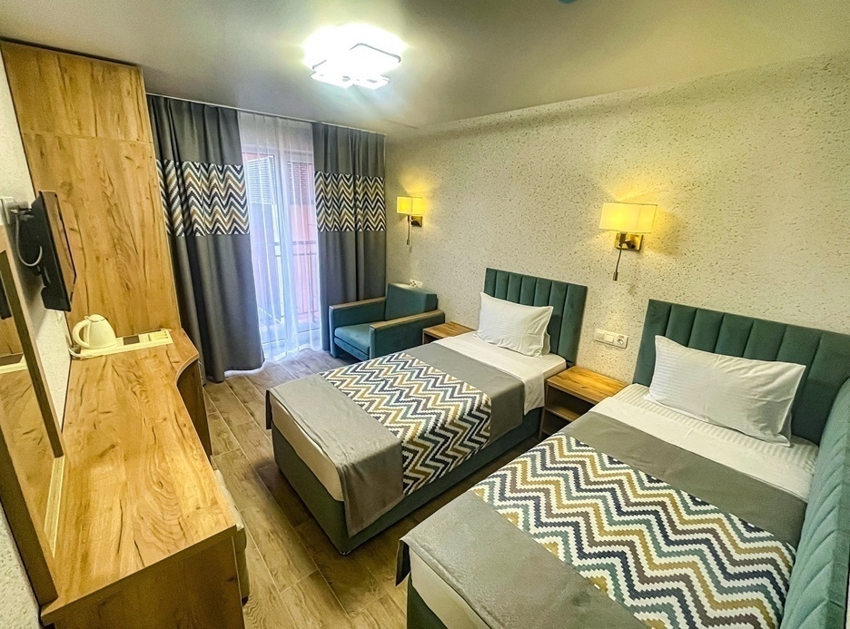 Стандартный номер с видом на парковую зону. В номере предусмотрена модульная система кроватей, по желанию можно объединить два спальных места в одно. Номер оснащен спутниковым TV, кондиционером, холодильником. В ванной комнате есть фен, набор полотенец для каждого гостя и необходимые гигиенические принадлежности.Комфорт