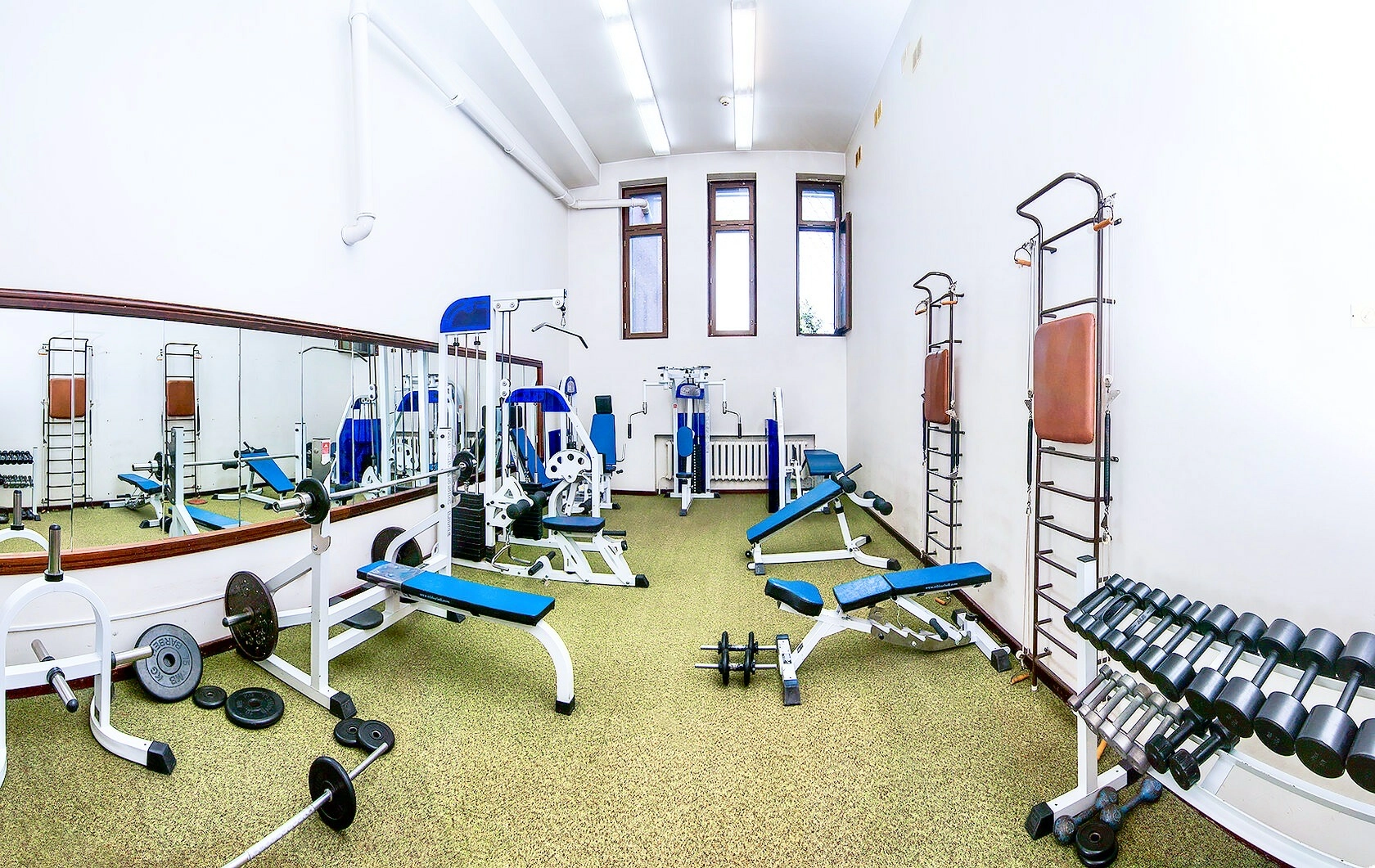 Для тренировок спортсменов поблизости имеются два спортивных зала. На территории расположены открытые спортивные площадки, тренажёрный зал и рекреационный бассейн с сауной.