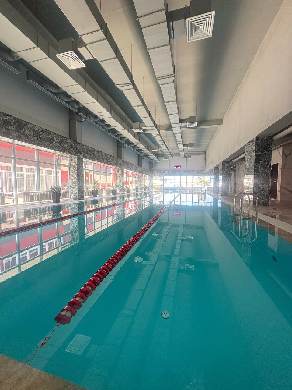 Особого внимания заслуживает бассейн длиной 24 метра. После активных тренировок можно расслабиться в комфортабельной СПА-зоне, включающей хаммам и сухую сауну с можжевельником, а также уютную зону отдыха.
