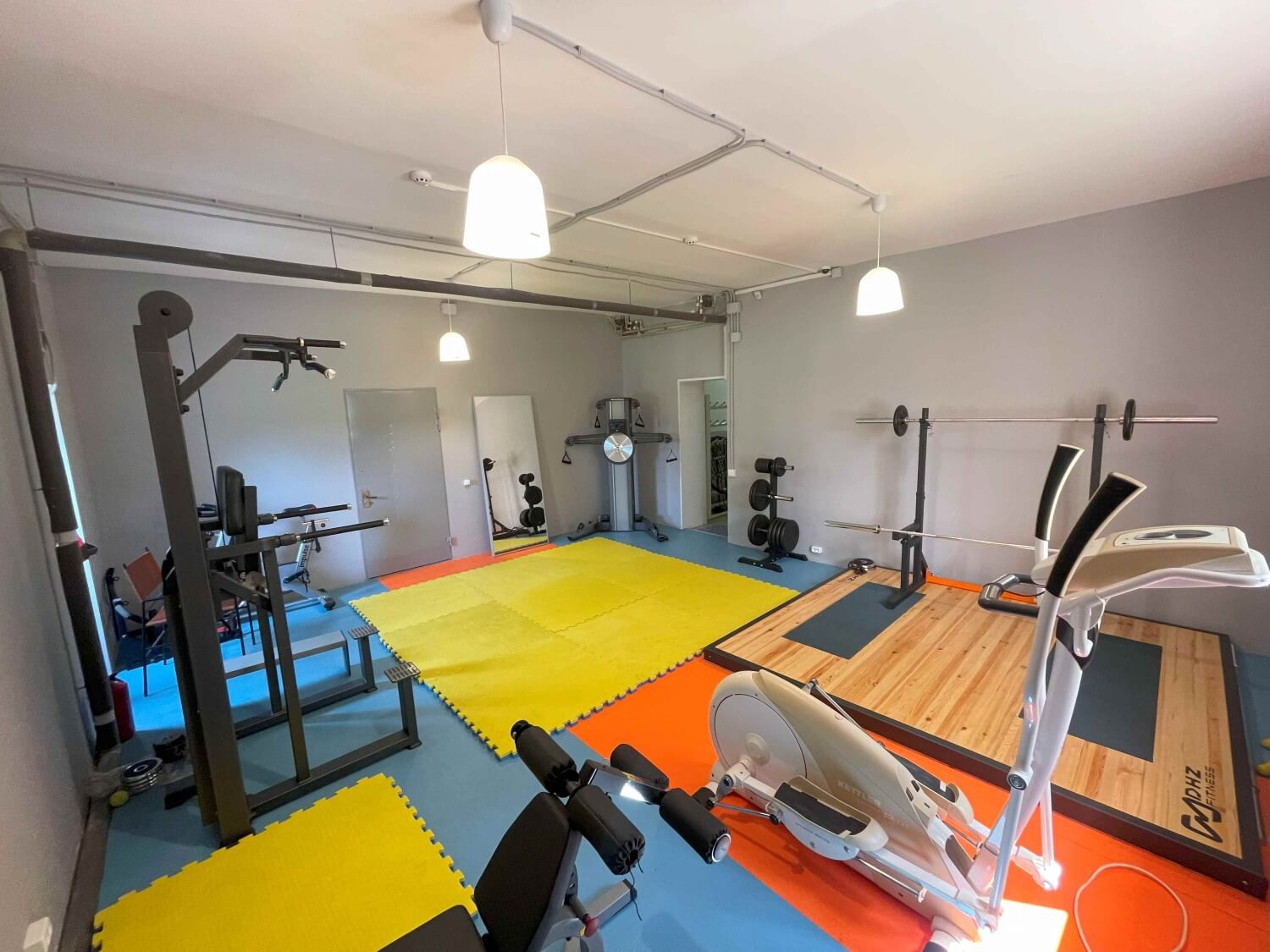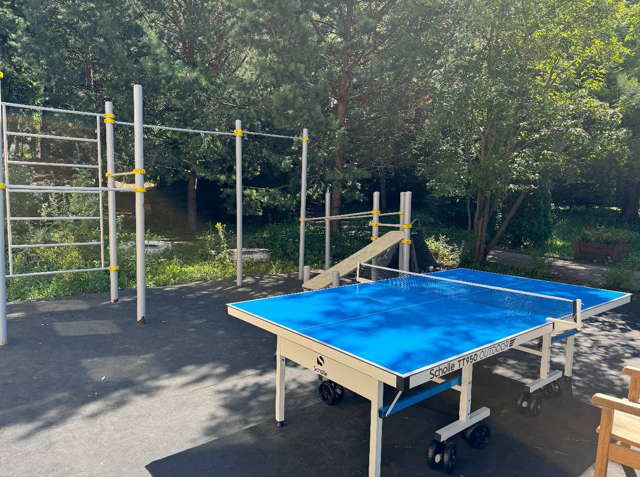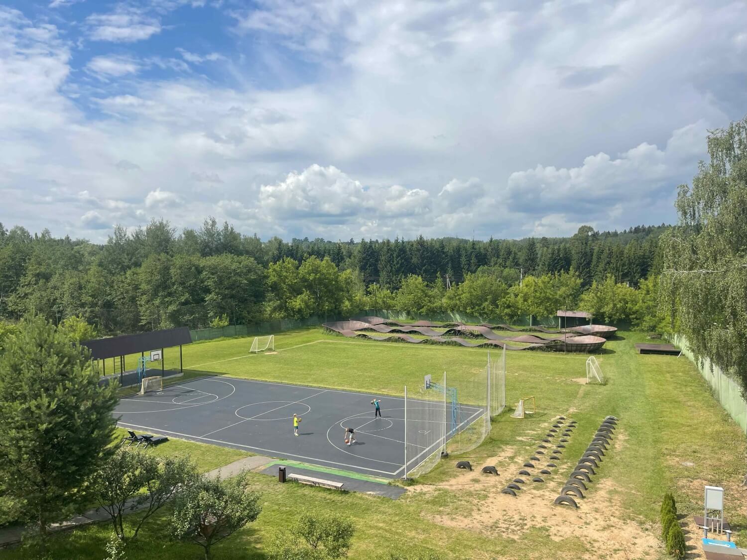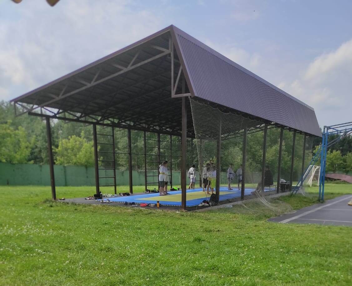 - Площадки на территории: универсальный спортивный и тренажёрный залы, зона тяжёлой атлетики, футбольное и баскетбольное поля, памп-трек, воркаут