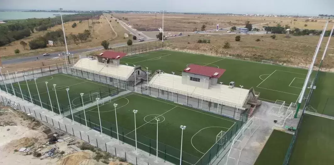 Спортивный комплекс оснащен двумя натуральными и тремя искусственными полями. Удобные раздевалки прямо у полей, освещение в темное время суток.
