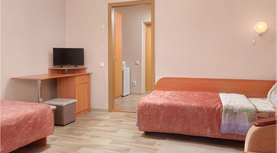 В санатории пять жилых корпусов: 4-х этажный корпус (главный), три 2-х этажных корпуса, 5-ти этажный корпус. Отдыхающим предлагаются жилые номера различной категории: одноместные, двухместные, номера «Люкс» и «Полулюкс». Все номера имеют санитарно-технические удобства, оснащены комфортной мебелью, телевизорами, холодильниками. Во всех номерах есть чайные и столовые принадлежности.Цена от