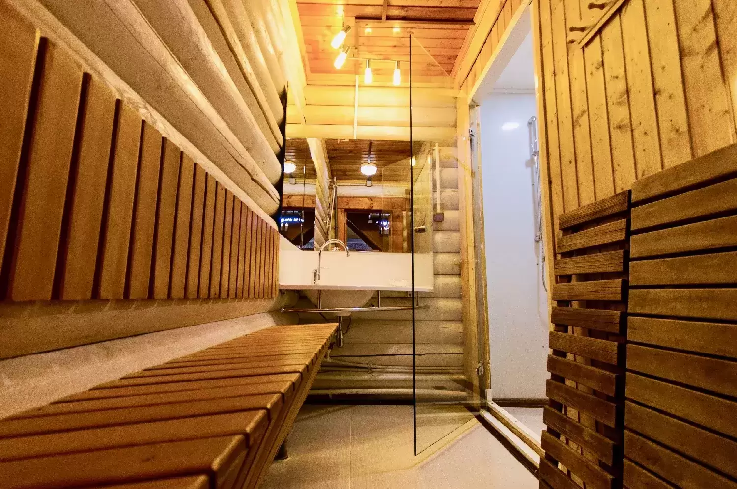Собственный санузел в каждом номере оснащён ванной или душевой кабиной, туалетом, умывальником с зеркалом, феном и необходимыми гигиеническими принадлежностями.